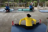 队员进行拉伸训练