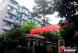 楼下打出欢迎横幅